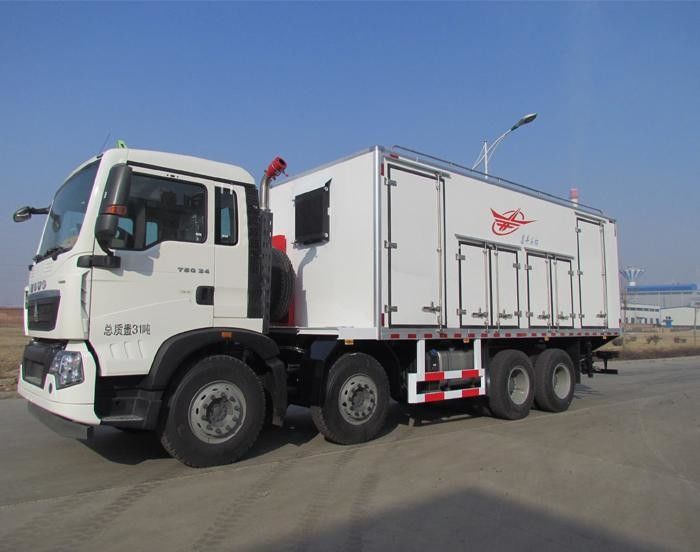 BCRH-15 on-site mixed emulsion explosive vehicle is contained in each bin: fase de agua, fase de aceite, sensitizador y matriz de látex en el coche, es decir, emulsificación,se efectúa la sensibilización y el llenado en el vehículoEs una combinación de transporte, mezcla y llenado, y es adecuado para el funcionamiento de agujeros de explosión que contienen agua en minas a cielo abierto.el flujo de la fase acuosa y la velocidad del emulsionante adoptan un seguimiento automático y un control de circuito cerradoTiene un sistema de garantía de seguridad para el apagado de alarmas de sobre-temperatura, sobre-presión y ruptura de material.
